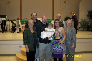 Speaking of Charlotte, last Sunday was her Baptism and it was wonderful. We had 8 of my NY relatives either fly or drive here for it and after you counted MN family and friends we had 35 people there to celebrate this special occassion! She of course did beautifully even though she just came down with her 1st fall/winter cold - which she so generously shared with Jaden and I! She also has mastered the full hands and knees crawling and decided pulling up on things is fun too ... it is hard to believe that she will be 10 months old next week - 2 months from 1 year! UGH! Time goes by too fast! She is as cute as ever and I am loving my time with her at home - though I am sure she is BORED of me by now! She has a new found love - Jaden's Toy Kitchen - she spends hours tearing that thing apart and playing (I mean chewing) on all the pretend foods ... it is fun to watch her enjoy something that Jaden spent hours playing with as a little one!